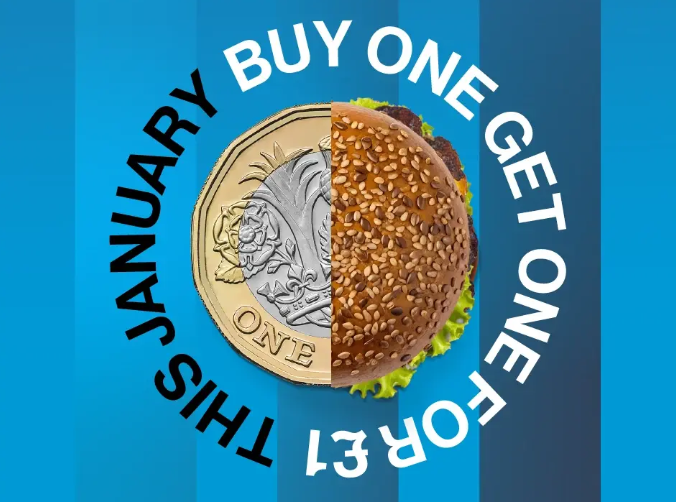 Treat yourself to a burger in our bars and score another for just £1 this January. From our mighty Patriot, stacked with bacon, cheddar, pickles, and BBQ sauce, to the firey Buffalo Chicken burger coated in hot sauce & honey glaze, we've got a great range for our meat eaters. After our plant-based options? Check out our Return Of The Veg, using our own quinoa pumpkin & spinach, sweet & spicy onions, dragon mayo & crispy onion rings; or our What The Cluck, packed with Tindle's crispy chicken, vegan mayo, lettuce, red onion & pickles. Offer pre-book only. Terms & Conditions apply.